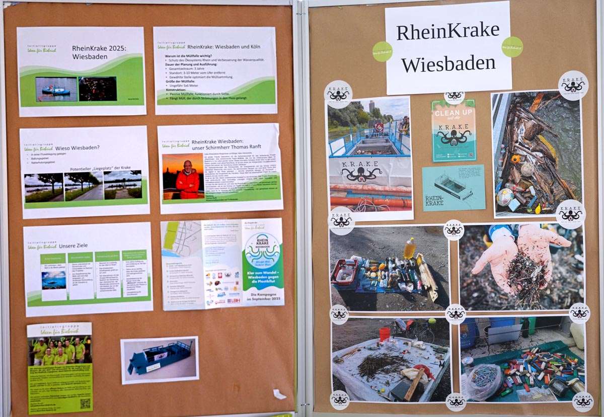 Am Biebricher Rheinufer links des Biebricher Schlosses in Richtung Schierstein an einem Steg soll die Rheinkrake Wiesbaden, eine Passivmüllfalle entstehen. Sie soll künftig Plastikmüll aus dem Rhein fischen und gleichzeitig ein Bewusstsein dafür schaffen, dass Umweltschutz vor der eigenen Haustür beginnt und letztendlich jeder einen kleinen aber entscheidenden Beitrag dazu leisten kann.